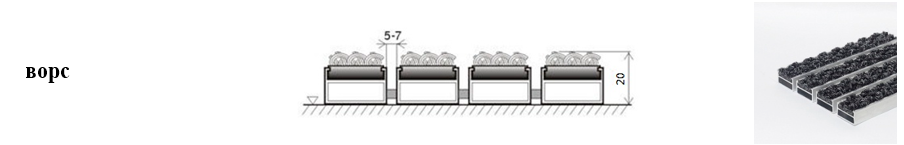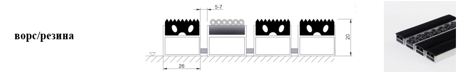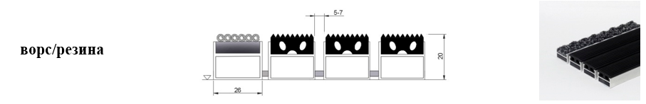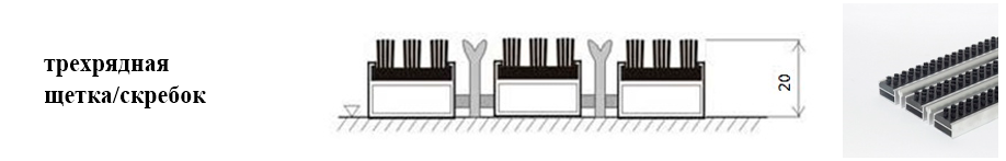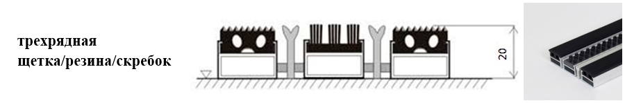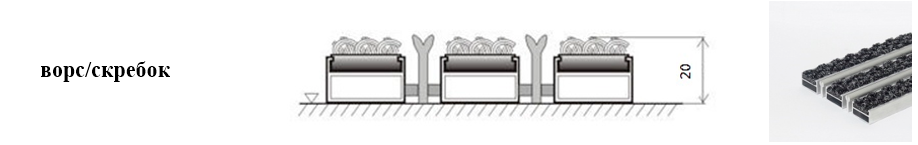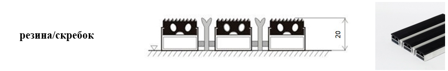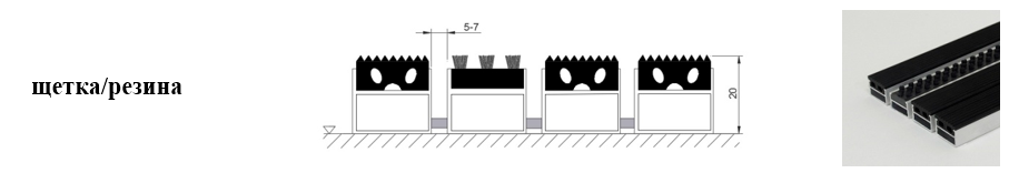 Придверные решётки 20 мм – решетки с большими вариантами защитных элементов (резина, щетка, текстиль), которые закрепляются в несущих профилях из алюминия.