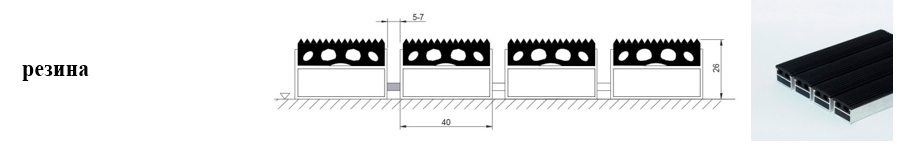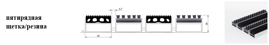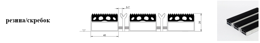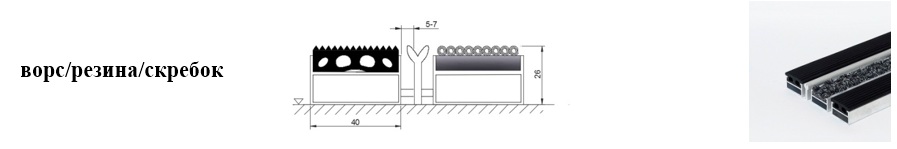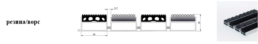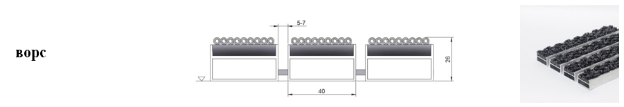 Придверные решётки 40 мм – решетки с большими вариантами защитных элементов (резина, щетка, текстиль), которые закрепляются в несущих профилях из алюминия.