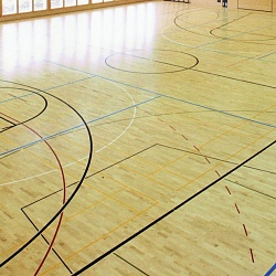 Многослойный спортивный паркет с верхним слоем из твердого дерева 5,2 мм для многофункциональных спортзалов. Сертификат федерации FIBA.