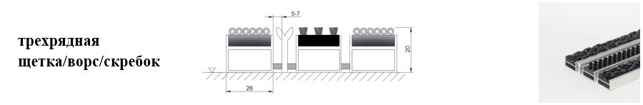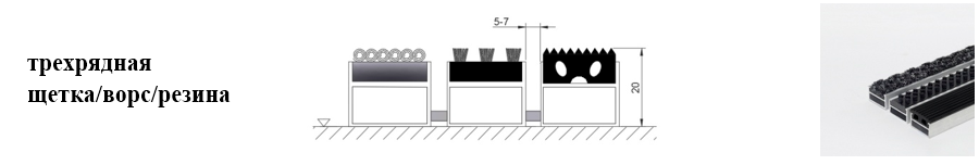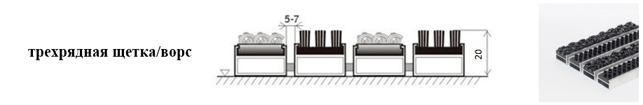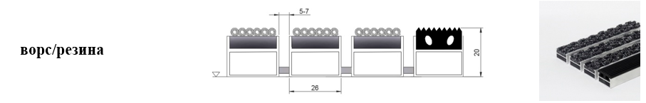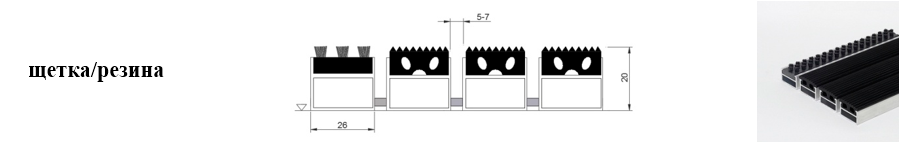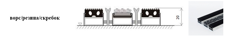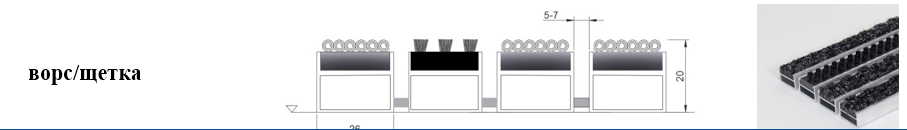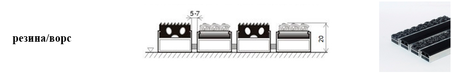 Придверные решётки 20 мм – решетки с большими вариантами защитных элементов (резина, щетка, текстиль), которые закрепляются в несущих профилях из алюминия.