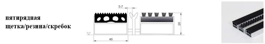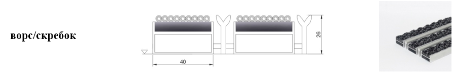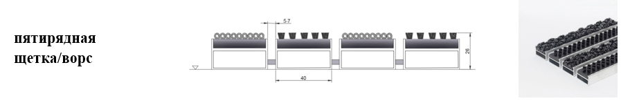 Придверные решётки 40 мм – решетки с большими вариантами защитных элементов (резина, щетка, текстиль), которые закрепляются в несущих профилях из алюминия.